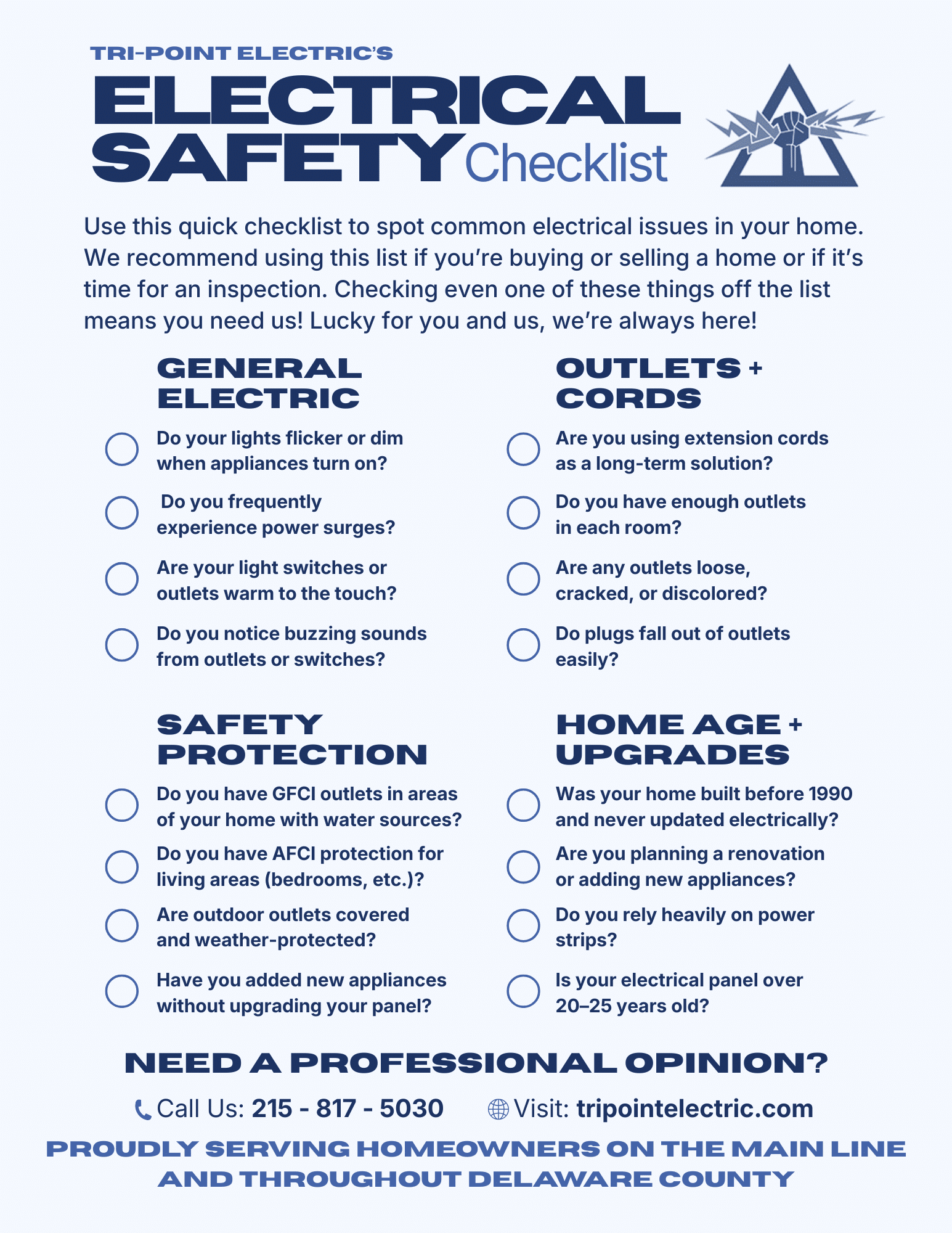 It’s never fun when you think you might have an electrical issue in your home, but you don’t know what to do. Most people turn to Google at this point to see if they need us to come out and take a look. How about you use our expertise instead. Click the button below to download our Electrical Safety Checklist. If you check off even a box or two, request service or call us.